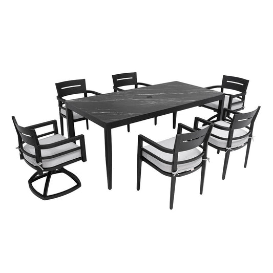 Cavallo 7-Piece Aluminum Outdoor Dining Set with Black Marble-Look Sintered Stone Tabletop and Sunbrella Cushions